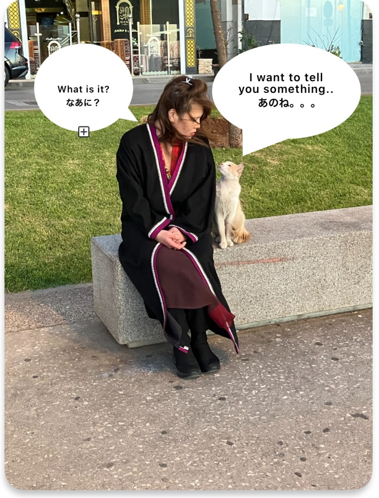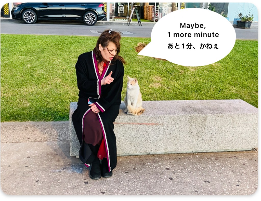 Then, a special guest appeared. A very friendly chat – cat 🐱 ひとなつっこい、ねこちゃんが。。。