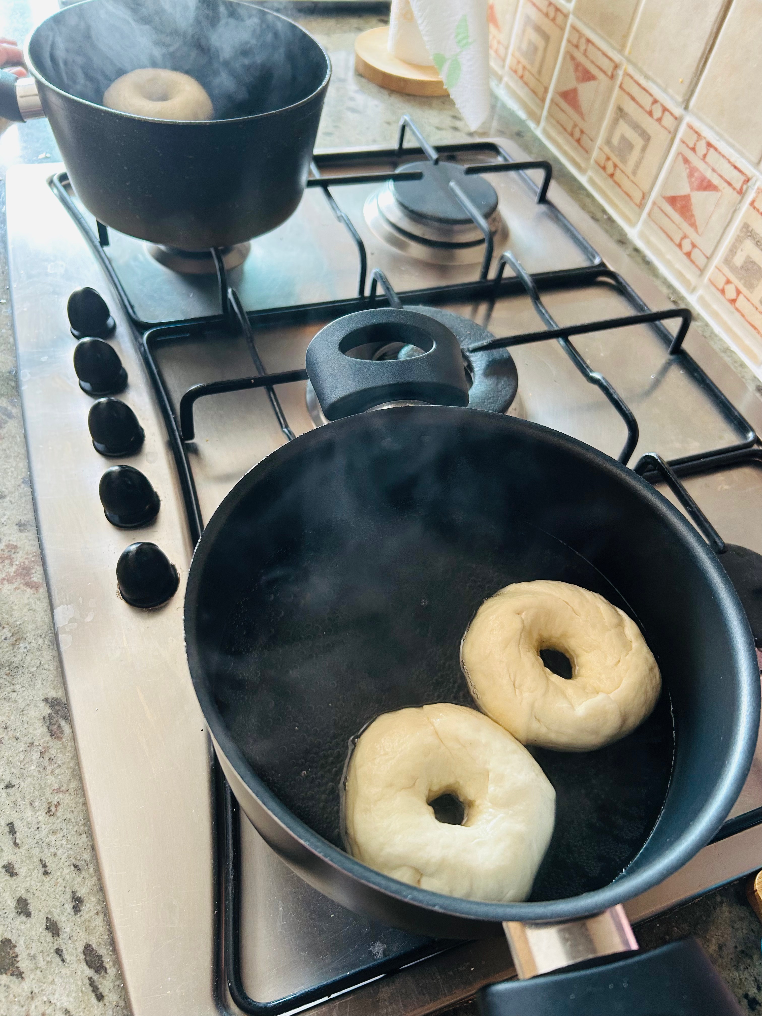 お友達のいよこさん、とてもとても賢いお方でして、「想像する心が創造をうむのよね✨」と。さすがです🙏。さて、旦那さんはベーグル🥯が大好きなんです。ニューヨーク·スタイル🗽の、中がモチモチ、外がカリッとした、スモークサーモンやクリームチーズと一緒に食べると美味しいやつです。朝食にベーグル、アメリカではよく食べてたんですが、こちらのおしゃれカルフールでもどこでも見当たらない。きっと食べたいんだろうなぁ、あったら嬉しいんだろうなぁ、、、と、彼の心を’想像’していたんです。