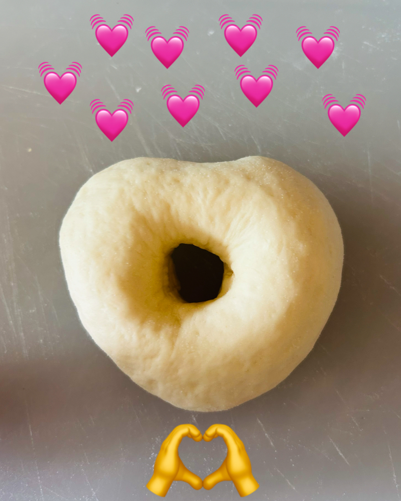 私の想像から、創造へつながり、そして、小さなハピネスになりました。まさか自分でベーグルを作る時が来るとは思いませんでしたが(結構手間がかかります、はい)旦那さんの幸せそうな顔をみたら、また作ってもいいなぁと思いました。3ヶ月に一度、かな(納豆作りと一緒の間隔で)。そうそう、ハート型のベーグルもちゃーんとハートの形でいてくれました!