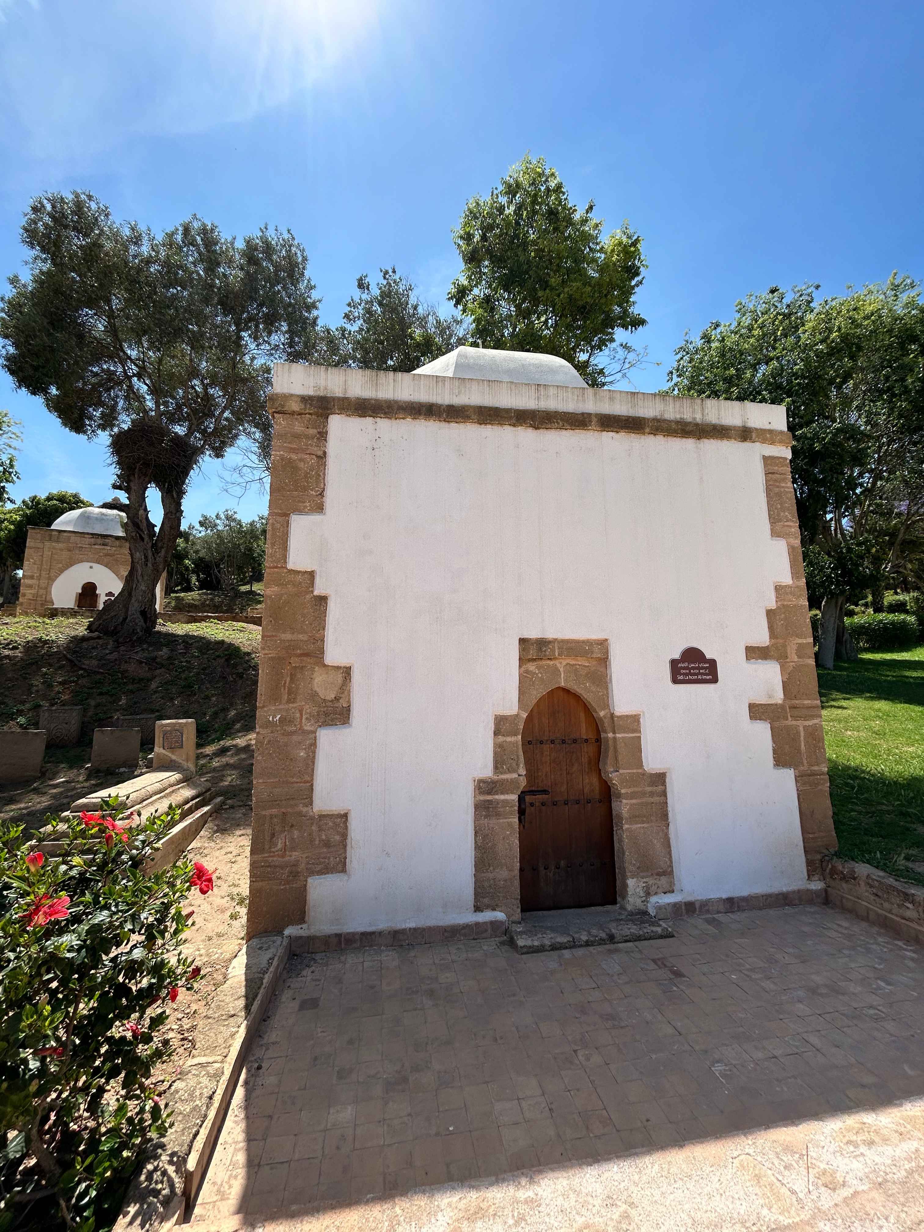 These small buildings were used as the tombs of Islamic saints/imams, or as gathering places for pilgrims. One of the buildings was where Jilali Gharbaoui, Moroccan painter/sculptor, lived for several years. Jilali Gharbaoui installed his workshop in one of these tiny places, and called it “Atelier l’œuf” (Atelier of Eggs). He has studied in Europe, and traveled to Japan as well.