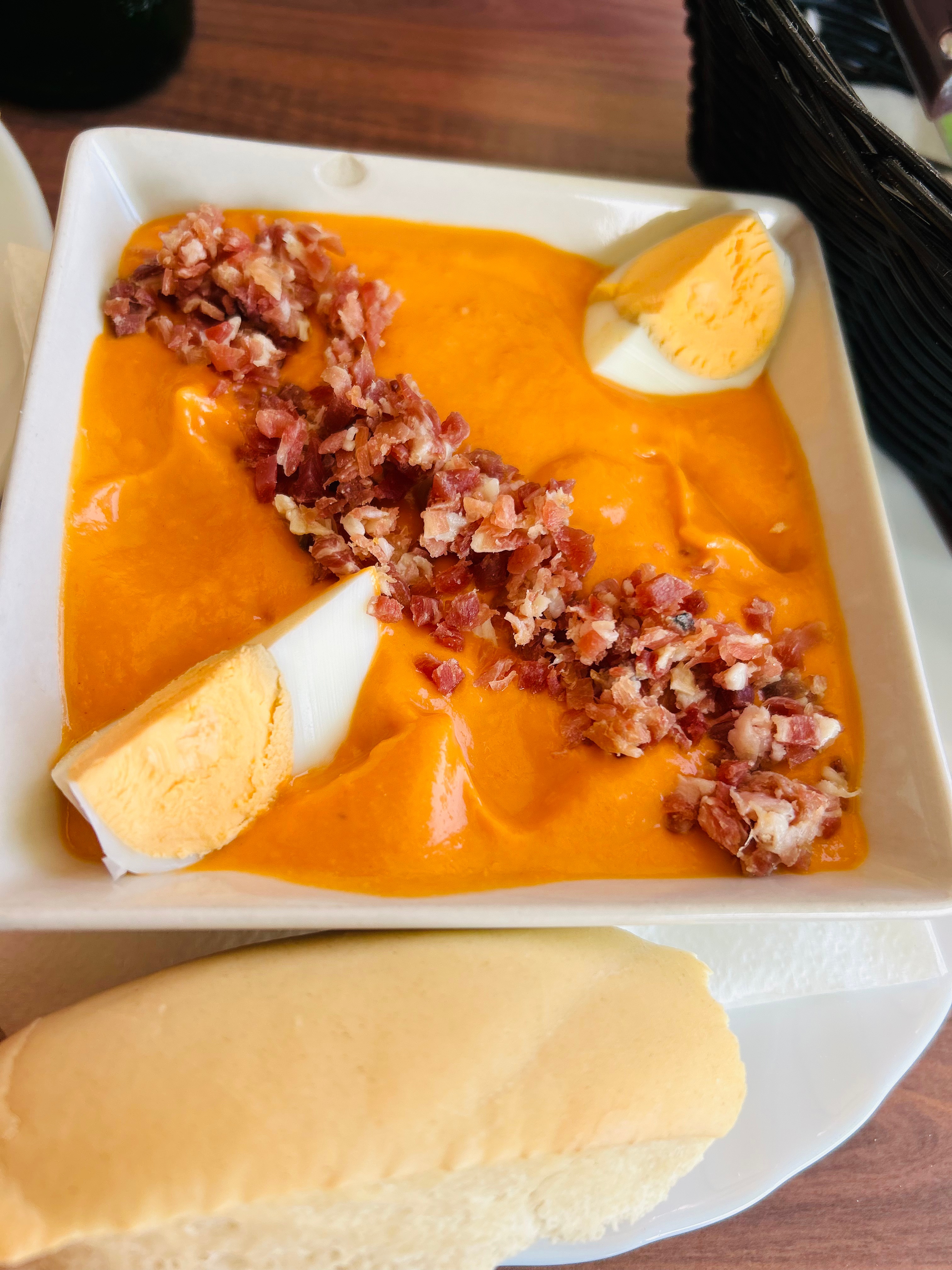 We had pretty hot days in Malaga – sometimes over 35 degrees🥵. So, we would always look for “shades” to walk, but, with some nice breeze and occasional cold beverages (or ice cream🍦), everything was grand! Speaking of “cold” items… This soup in Andalusia, called “Salmorejo”, was ridiculously delicious on a hot day! It is a very dense soup, as you would put tomato, garlic, olive oil, AND bread🥖 in a blender to make this yumminess. As for topping, some put chopped salami, tuna, or famous Jamón ibérico… Oh, it’s mouthwatering.