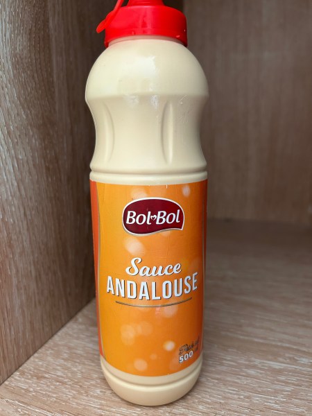By the way, let me introduce a very important member of our family (in our fridge): this is Andalusia Sauce. You can buy this sauce anywhere here in Rabat – and it is a mixture of tomato paste , mayonnaise, garlic, paprika…? Anyway, we accompany this with pretty much any fried food, and it tastes so good. Why called Andalusia? I have no idea.