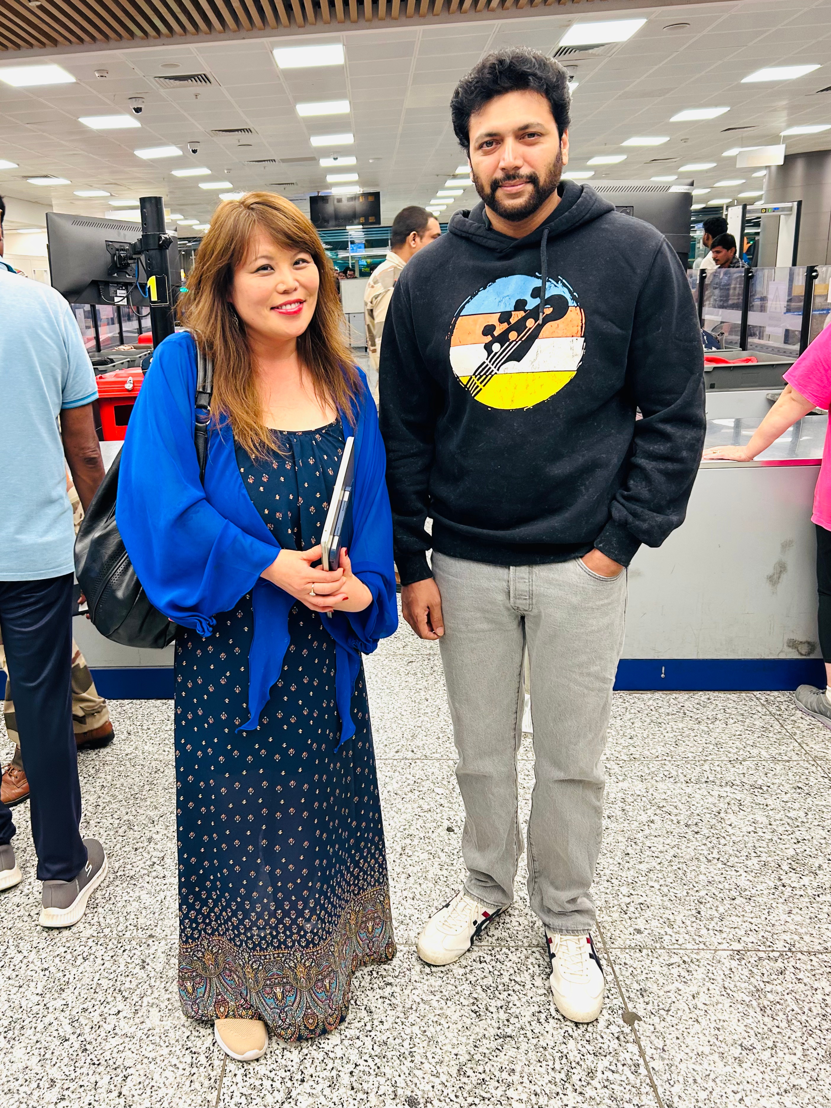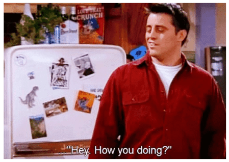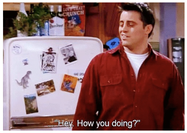 Okay, so the important part is, you move these hands – and often with two hands – in circular motion🌀. Then it becomes “How are you?” “Everything good?” kind of meaning. Here, I am showing its movement – do I look like Joey?: