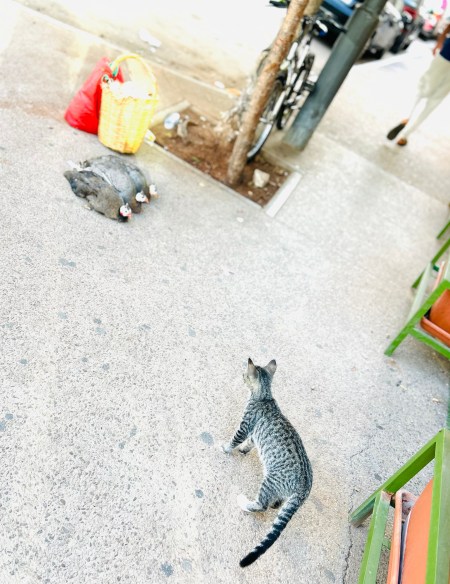 例えばこの手の動き。これは、ちょっと距離のある時などにも使われるんですが、「調子はどう?」「元気?」みたいな意味で、なんとなく、フレンズのジョーイ的な雰囲気があります。初めてここに住み始めてから、我がアパートの”ムッシュ·ハンサム”🕺🏻こと、ドアマンさんがよくこの動きをしていたんです。あるいは、おなじみハヌート(こちらの何でも屋さん)の店長さん、私たちがお店の前を通る時なども。アメリカだとこの手の感じは「おいくら?」とかお金系の意味があったりしたので、『あら、お金欲しいのかしら?』と勘違いしたのを覚えています。ソーリー!🙇🏻♂️