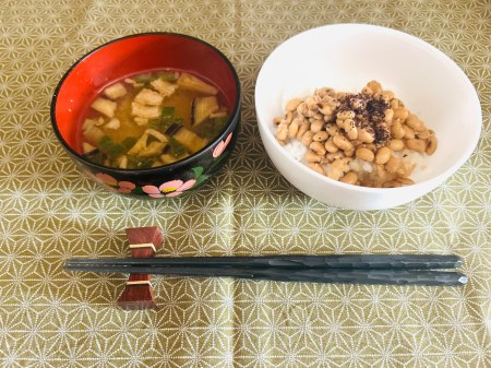 For breakfast, I think “natto and miso soup” is the perfect combination, even in Morocco.