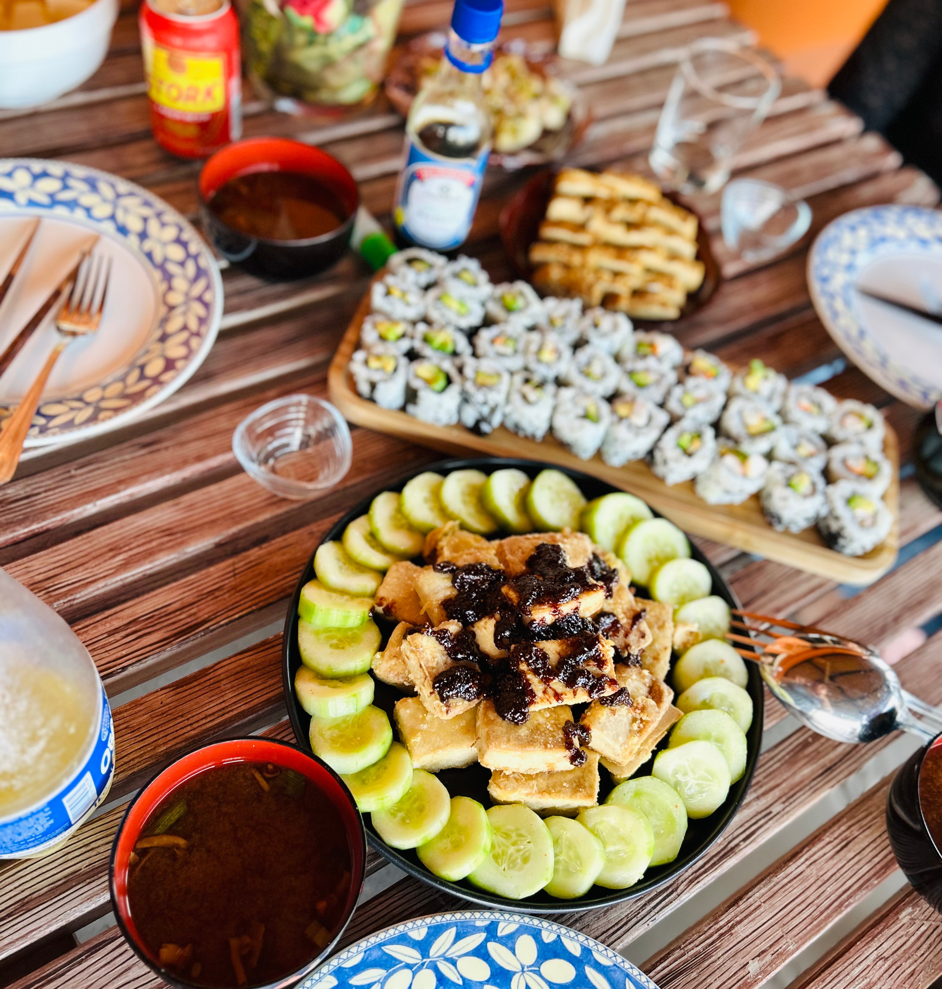 When we have guess to stay with us, I try to serve Moroccan food (Tajine, various kinds of breads, etc.) as much as possible. For breakfast, I often make Japanese Bento Box for our guests.
