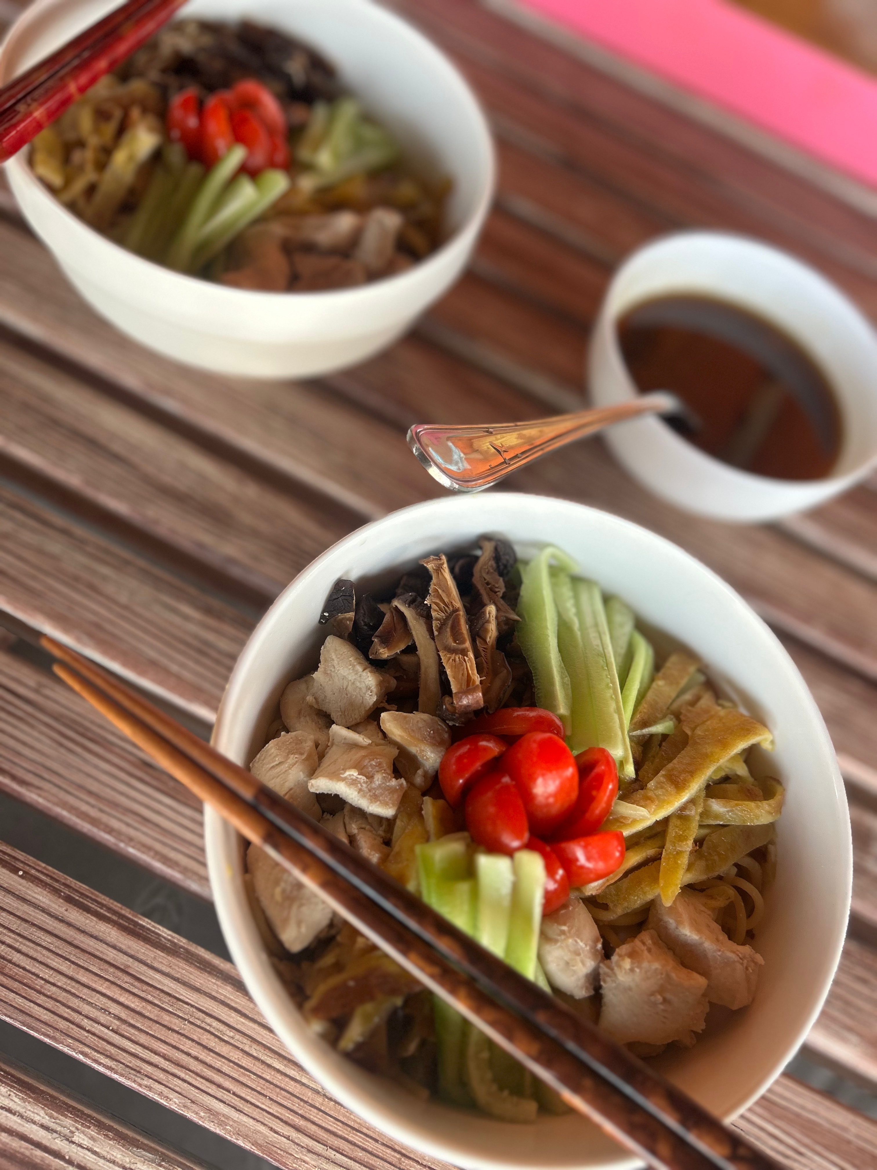 As for “Hiyashi-chuka (cold ramen)”, I learned that “boiling spaghetti with baking soda” makes it like ramen noodle; pretty wild.