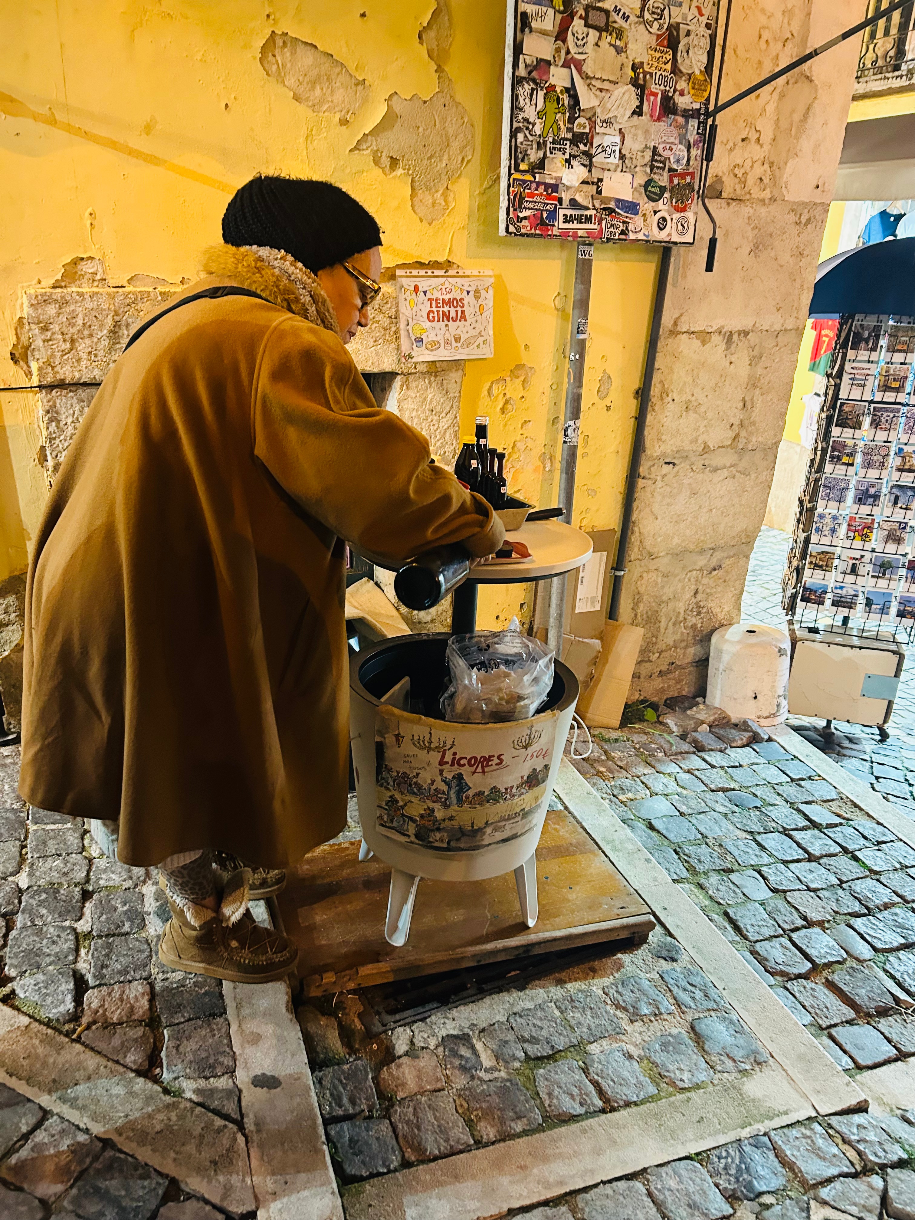 旦那さんは、ユダヤ人街でおばちゃまがひっそりと売っていた、リスボン名物のジンジーナも楽しんでおりました。チェリーのお酒をチョコレートで作った小さなカップで。かわいい。