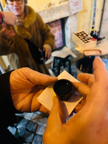 My husband seemed to enjoy the local specialty, Ginjinha. It’s a cherry liqueur served in a tiny chocolate cup, by a local auntie in an old Jewish neighborhood. So cute!
