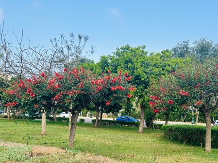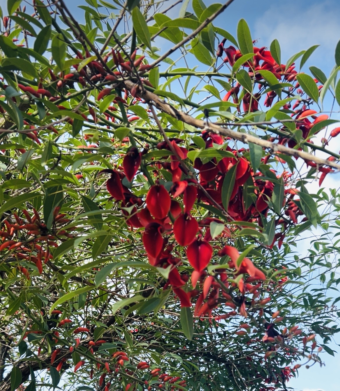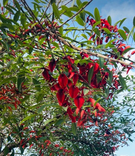 First tree to introduce – this is a Cockspour Coral Tree. Yes, Cockspour. What on earth is it? The flowers have a rather unique shape, and apparently they resemble the cockspour of a rooster’s foot.