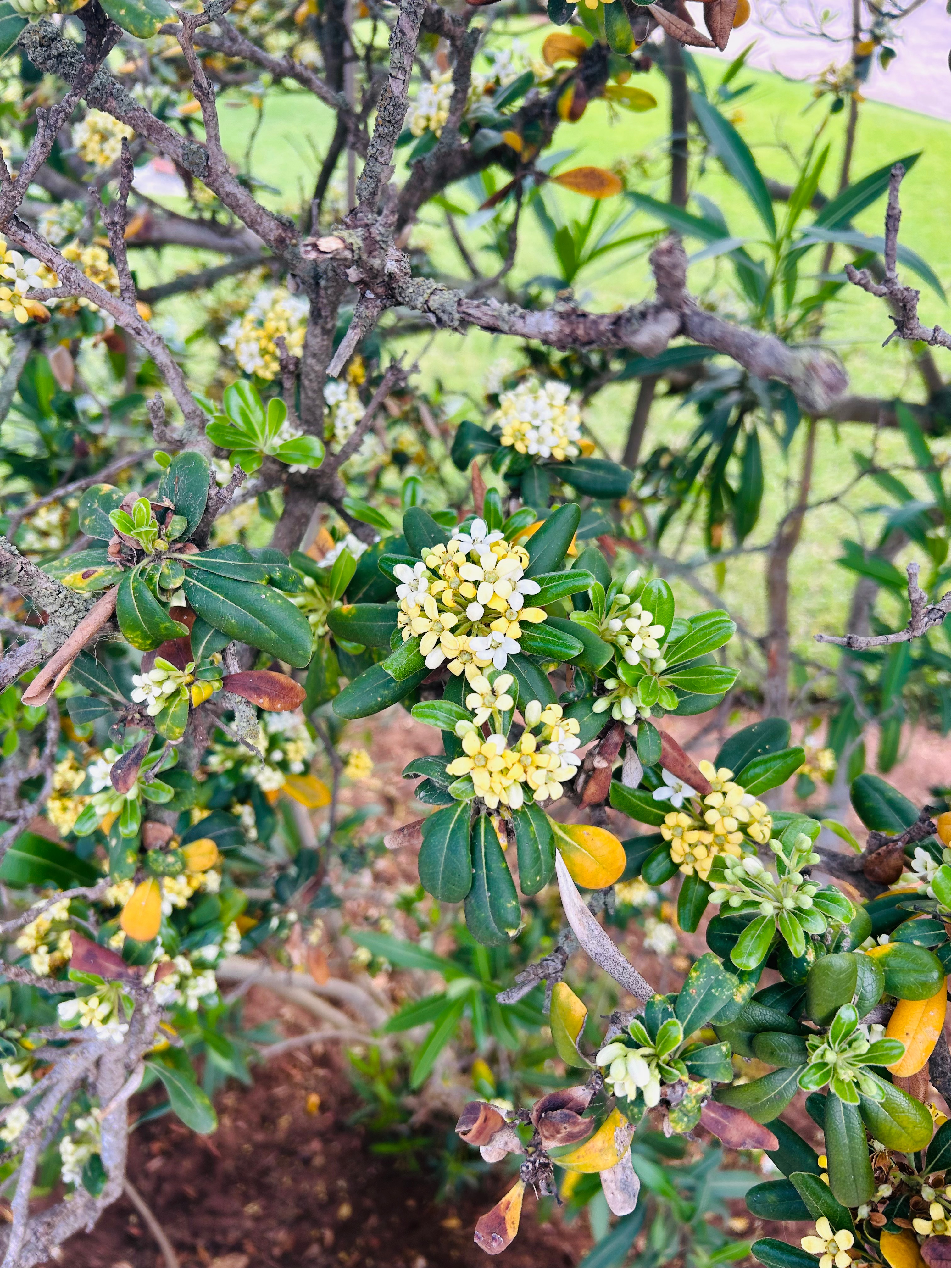 そして、甘い良い香りがしてきたなぁ、と思って出会ったのが、このJapanese Cheesewood Tree。ジャパニーズ!と言う名がついているだけ、日本古来の木だそうです。日本だとトビラと呼ばれていて、厄除け用にも使われるんだとか。