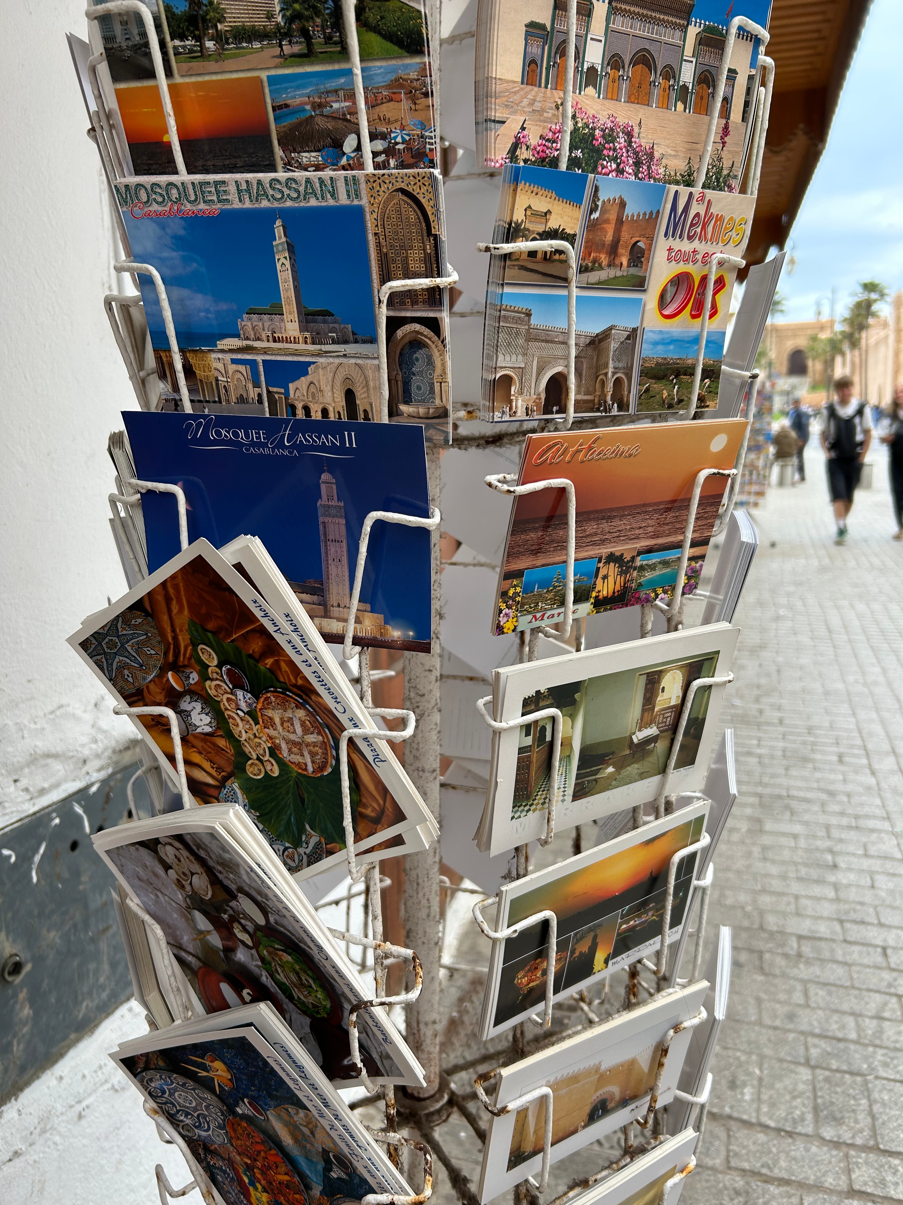 と思いきや、ない。ラバトの絵葉書が売っていないんです。なぜ?街の玄関である駅の売店にも、メディーナにも、モロッコ・グッズを売っているお土産屋さんにも、どこにもない。アルガンオイルやマグネットやラクダのお人形はあるのに、絵葉書はない。。。😔